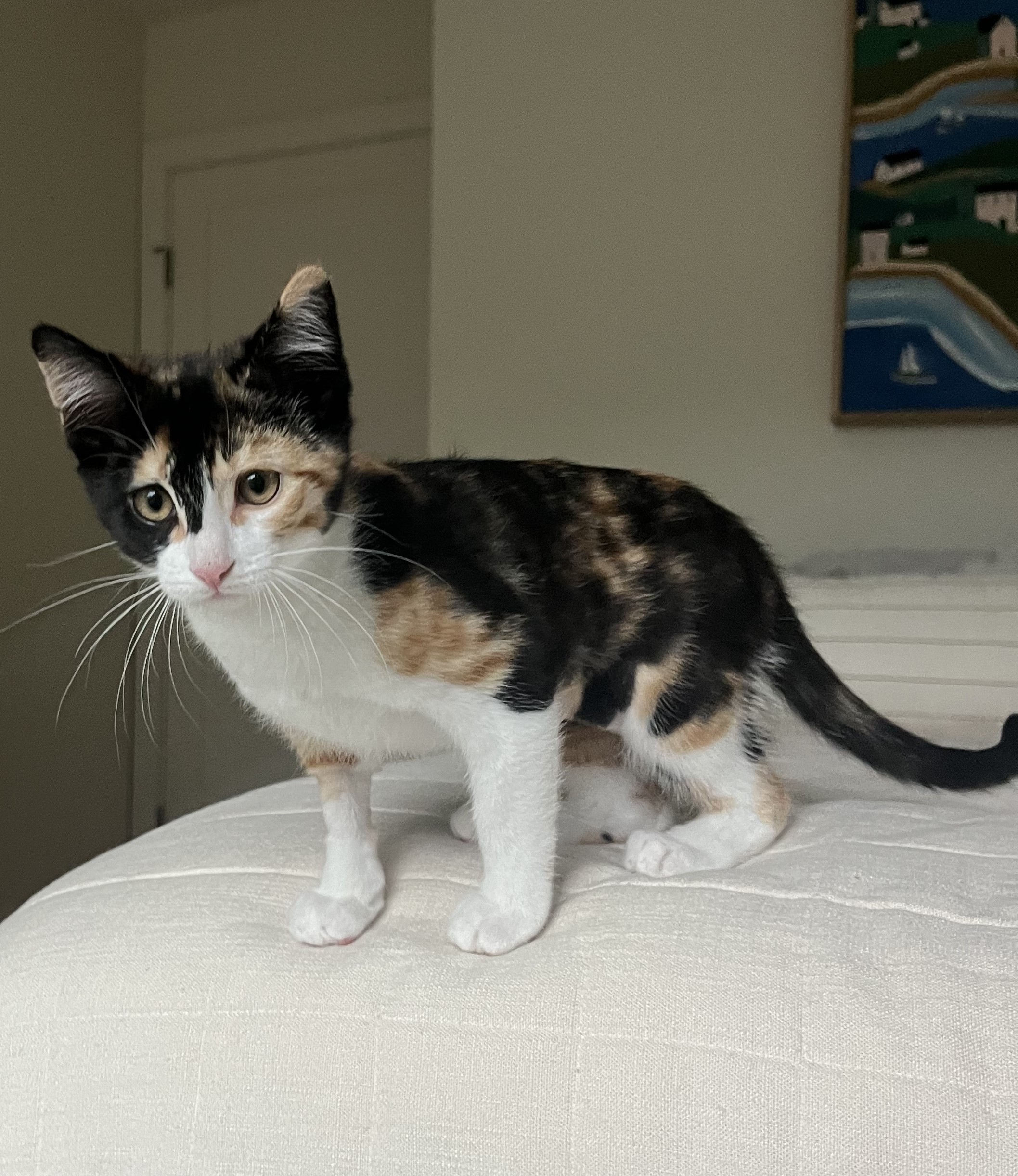 month old kitten who, like her sisters Antoinette and Aretha, is