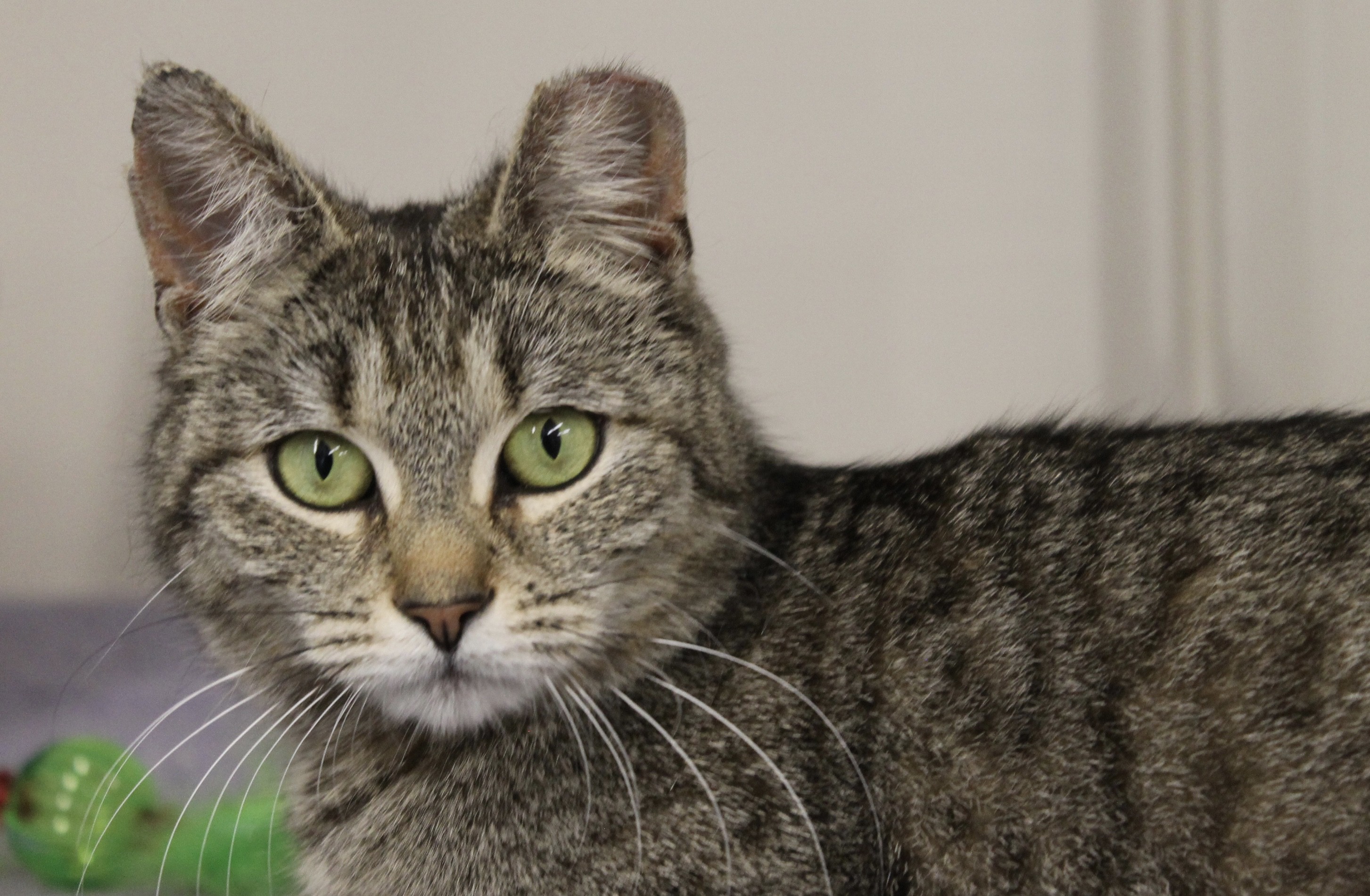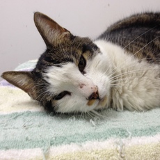 One look at that sweet, inquisitive face and you just know that this is a winner of a cat. With his floppy left ear and his gentle manner, Alex is a charmer who enjoys being held and being petted. His brief time on the streets was rough for this boy, but he's a true survivor who would love to snuggle up in your home.