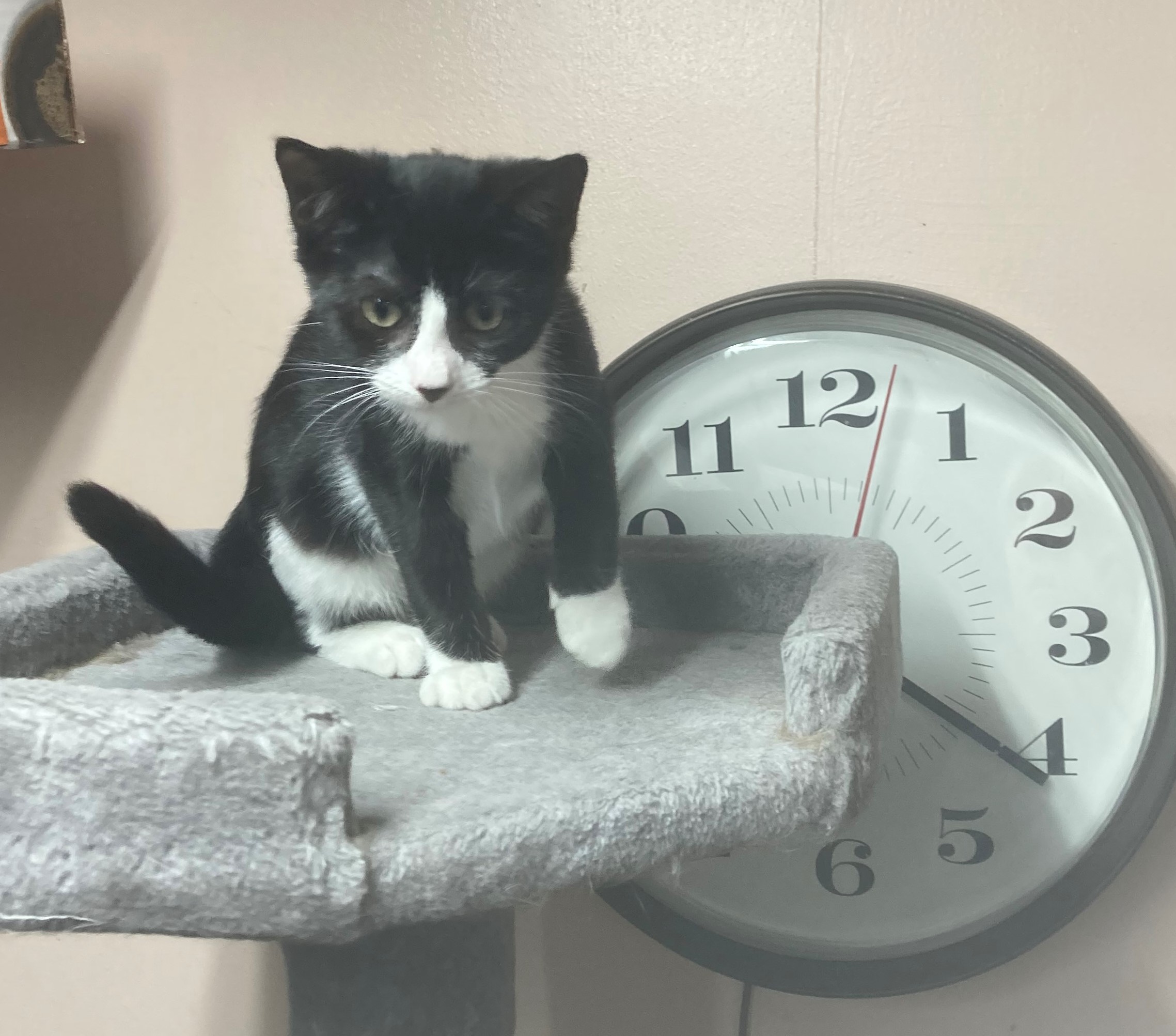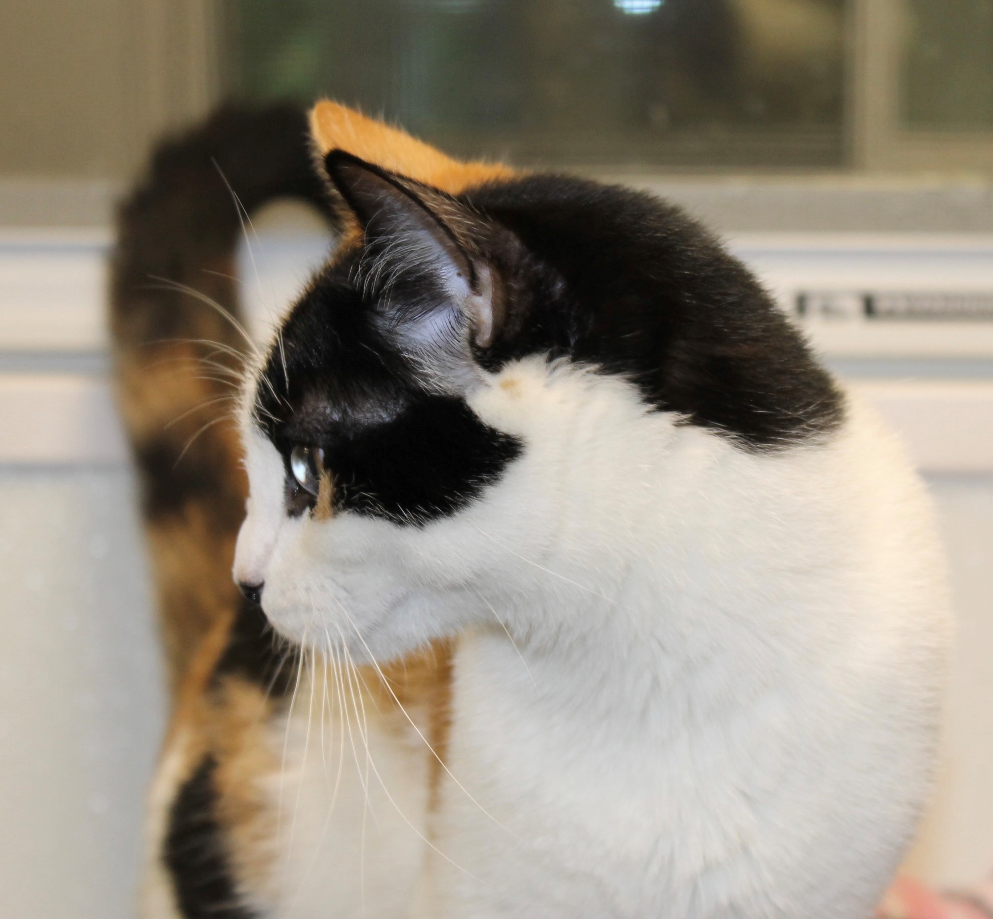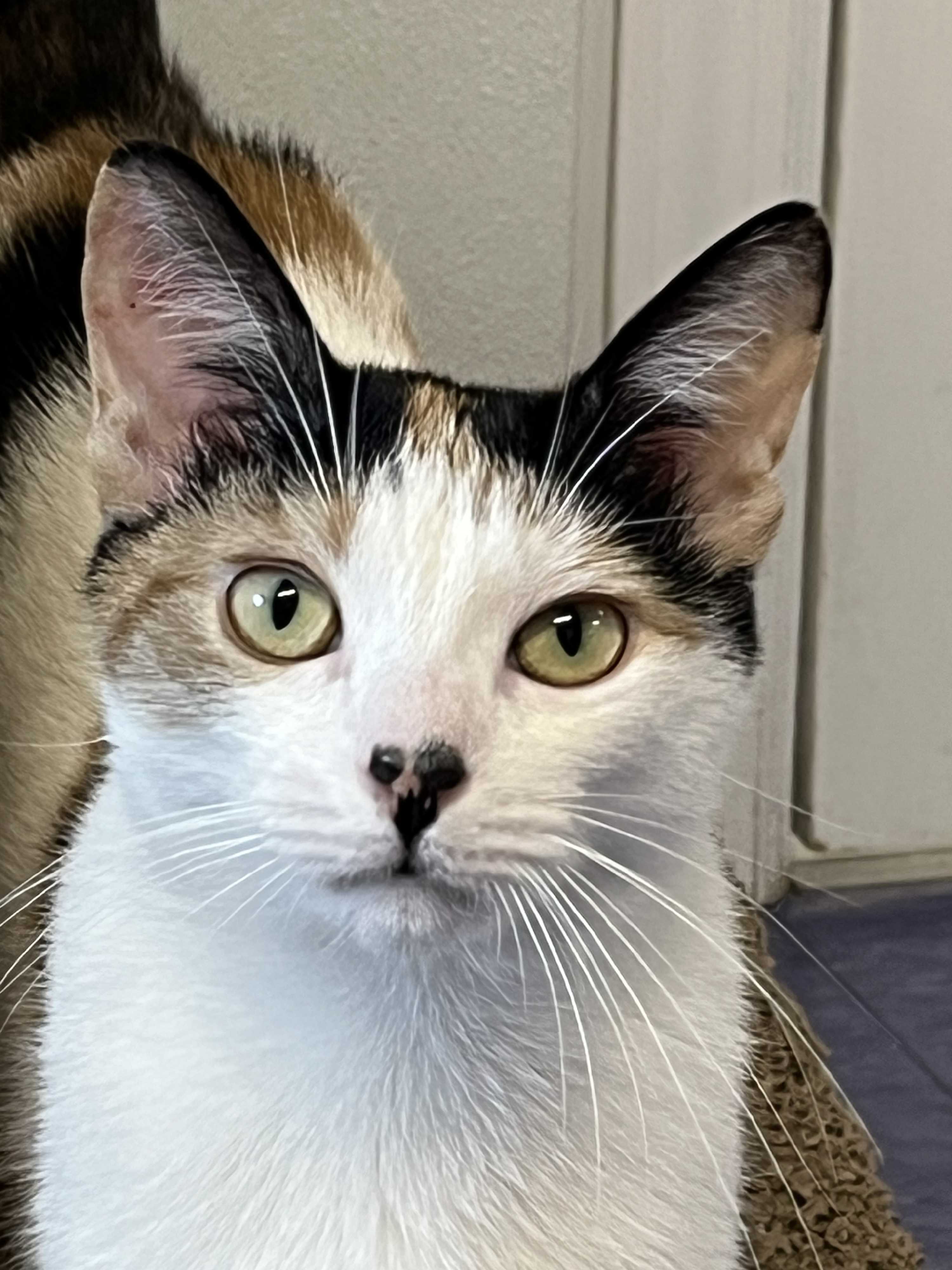 Adoption Pending DOB: 2/14/25 Meet Our Sweet Calico Girl! This adorable female kitten is full of personality and charm. With striking calico markings—splashes of orange tabby peeking through her tortoiseshell-black and white coat—she’s as unique as she is beautiful. She’s incredibly affectionate, playful, and outgoing. Don’t be fooled by her dainty size—she may be smaller than her brother, but she definitely runs the show! Whether she’s wrestling with her sibling or snuggling up for a nap, she brings joy and energy to every moment. Ready to meet your new best friend? She’s available for adoption and can’t wait to find her forever home!