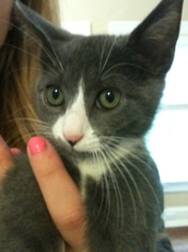 This delicious 11 week old kitten is one of Gwen's litter of 5 (Alpine, Aspen, Ace and Aubrey are her siblings), born the end of July. This little lady is grey and white with a super friendly personality and affection to spare. She is great with dogs and other cats too. Playful and a purr machine when held, Autumn just needs a permanent home to call her very own. One look into those sweet eyes and you will want to take her home. Check out her siblings on our website. If interested please email madie96@aol.com
