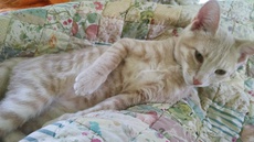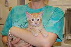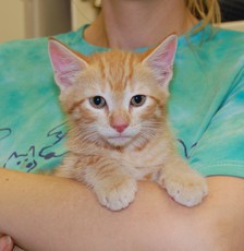 Aspen (buff orange kitty) is a fabulous little boy. And so adorable is this lively, charming, fun-loving kitten. About 4 1/2 months old now, Aspen is neutered and ready for a permanent home. He is such a cutie!