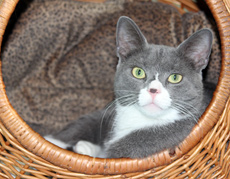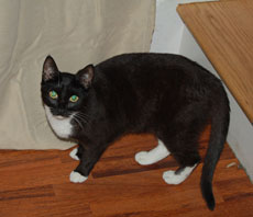 HENRIK (tux) A handsome boy, he keeps everyone in check. Henrik loves to play with his mouse, climb stairs and jump in and out of baskets.