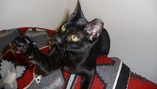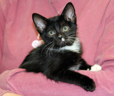 Ace is a solid black, handsome boy, one of a litter of 4 8 week old kittens, born the end of July. Affectionate, friendly with lots of spunk, Ace will charm you with his boyish antics. A photograph of this amazing little guy will be forthcoming.