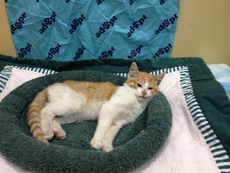 Acorn is an adorable little kitten, born in late August 2012, and rescued from the streets. This sweet little guy now resides in a foster home with other cats and several small dogs, all of whom he gets along with. Acorn is very curious and playful as can be. He is up to date with his kitten shots and in excellent health.