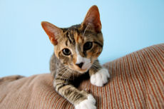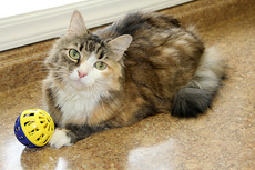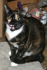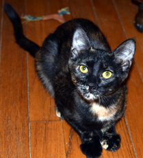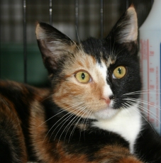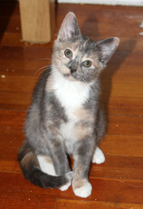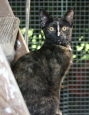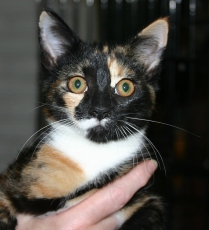 is a beautiful tortoiseshell / calico mix, about 7 months old. She is very sweet, friendly & playful. She gets along well with other cats and just a pleasure to have around.