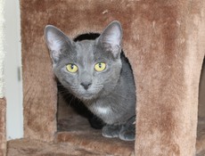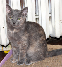 Ash is a beautiful young gray kitty, who is about 1 year old. Rescued in Long Island, her rescuer took her into her house for several months. Ash is very affectionate and outgoing. She gets along very well with other cats.