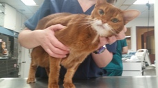 Abby the Abyssinian is a gorgeous, friendly, sweet and gentle 12 year old Abyssinian left at a vet's office. She is healthy and up to date with vaccines. Please consider giving a loving home for this little girl with a magnificent red coat and sparkling bright green eyes. To meet Abby, please contact the Veterinary Emergency Group, at 914-949-8779 and ask about Abby.