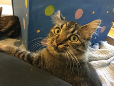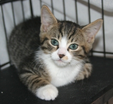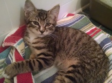 Austin is a male tabby kitty. He is part of a group of kittens rescued recently by our intrepid rescue volunteers. All four kittens (including Blueberry, Hammy and Wendy) are about 4 months old as of November 14th and are very energetic and playful kitties.