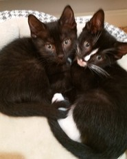 Alexis Kittens are now 3 sweet, lovable, frisky and friendly male kittens, approx. 12 weeks old. Ghost and Junior (black with white tufts) and a gray tabby named Ned make up this darling crew. Their litter mate Duke was adopted on 10-20-18. All three remaining kittens are very playful and can be held and handled easily. All are fine with dogs and would do well in a family setting. We prefer that the kittens be adopted in pairs when possible. (ad).