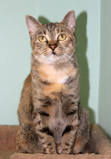 Meet Asia, a pretty tabby tortie mixture! Asia is about a year old and loves to play. She will greet you and insist on being petted and played with. What a wonderful cat for a family that wants a cat to be their friend.