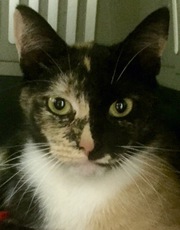 Ashley is an 5 year (11/23/15) old black/white tuxedo female. Feisty and playful, Ashley was left behind in an apartment when her owner moved. This active, intelligent cat is in great health, up to date with all vaccinations and will make a fun addition to your household.