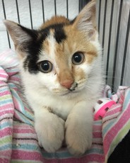 Adoption Pending Born October 2021 This petite calico girl is a cuddler. She welcomes being picked up and cradled. Autumn simply loves people. She's not much of a talker but her actions speak volumes and her purr is evidence of her happiness. Autumn will join you in a game or two but she never jumps about or makes a mess. She will thrive in a home where she can receive the attention she deserves.