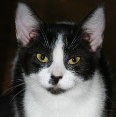 a 2 year old shiny tuxedo, is gentle, loving, and easy to love, playful, and good with other cats.