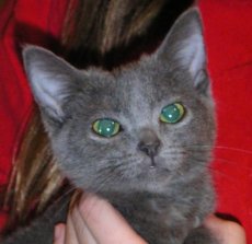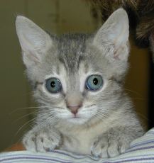 Alexis was an only kitten and has come a long way. At first she was shy around other kittens and people. Now she is all over everybody. She loves to be held and will snuggle up right under your chin. She can't get enough of playing with her adopted brothers and sisters. She is all around a great gal. She is about 9 week old and is living with Margo, Marla, Marina and Marco Polo.