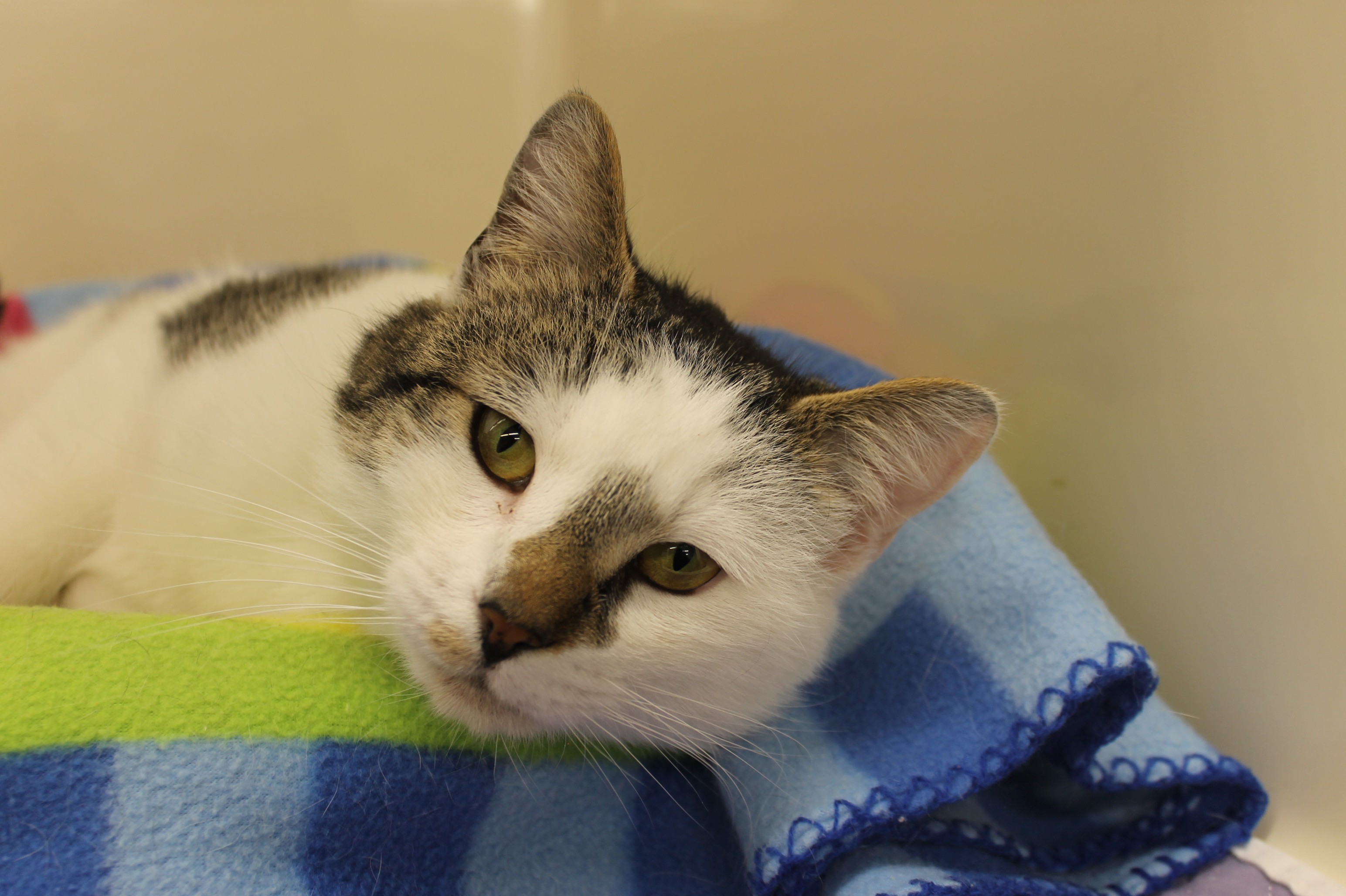 Butch and his brother Willy (also listed on this website) are approximately 15 months old and are a very friendly duo. These two adorable, pink-nosed, sweet boys quickly warmed their way into our volunteers' hearts. They are very playful, love meeting new cats, and excited for attention. Their heads pop up every time people walk into the room. Butch and Willy can be adopted separately.