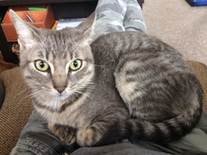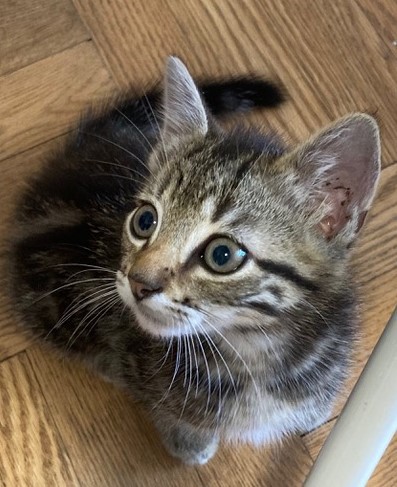 Born April 19, 2021 Bristol (grey tabby) is a rambunctious little guy - a real pistol! His brother was adopted and he is now looking for a forever home of his own. He is always curious, very friendly and loving, and gets along great with his foster family's own cats. Very sweet disposition. He is truly a charmer! Would do well as a family kitty and in a household with other cats.