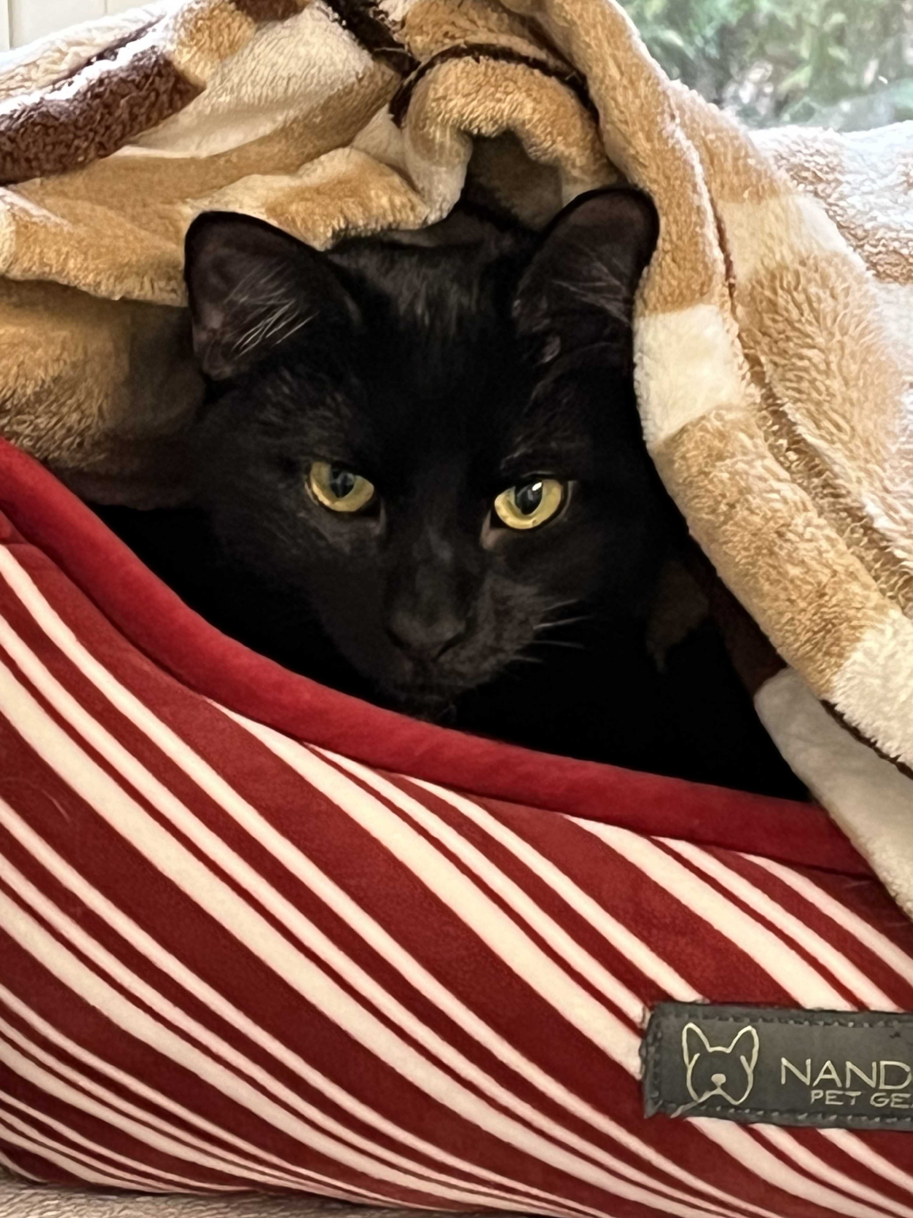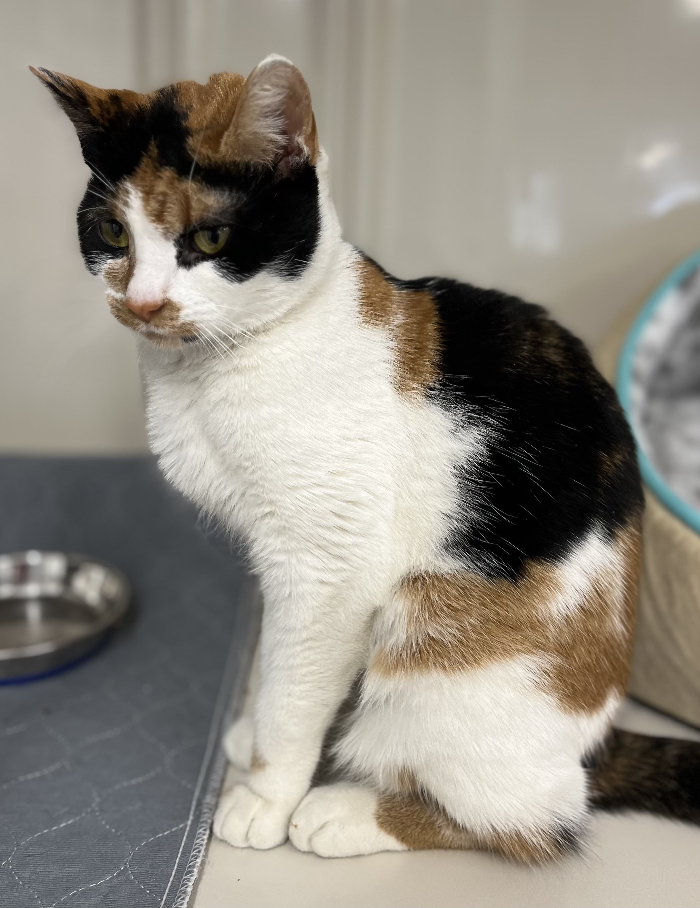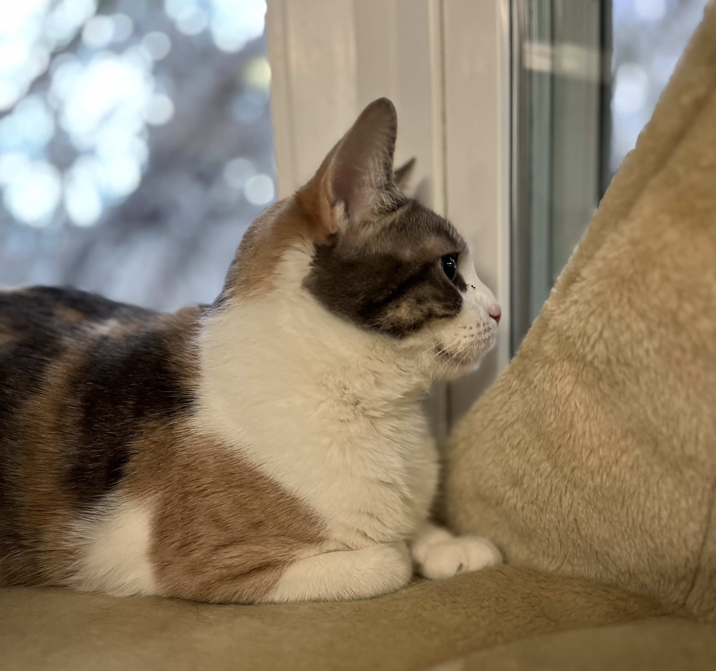 Born April 2021 Bea is a petite girl with a calm, loving temperament. She enjoys pets and is quick to purr. Bea gets along with other cats but is comfortable on her own. She is an expert at finding the coziest spots to nap and quietly watch the world around her. Bea is the perfect roommate, she never makes a fuss.