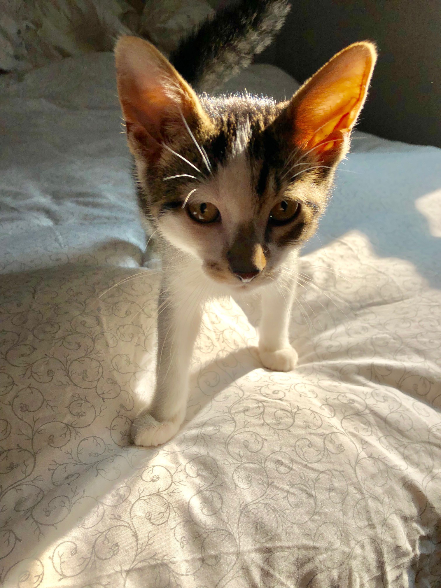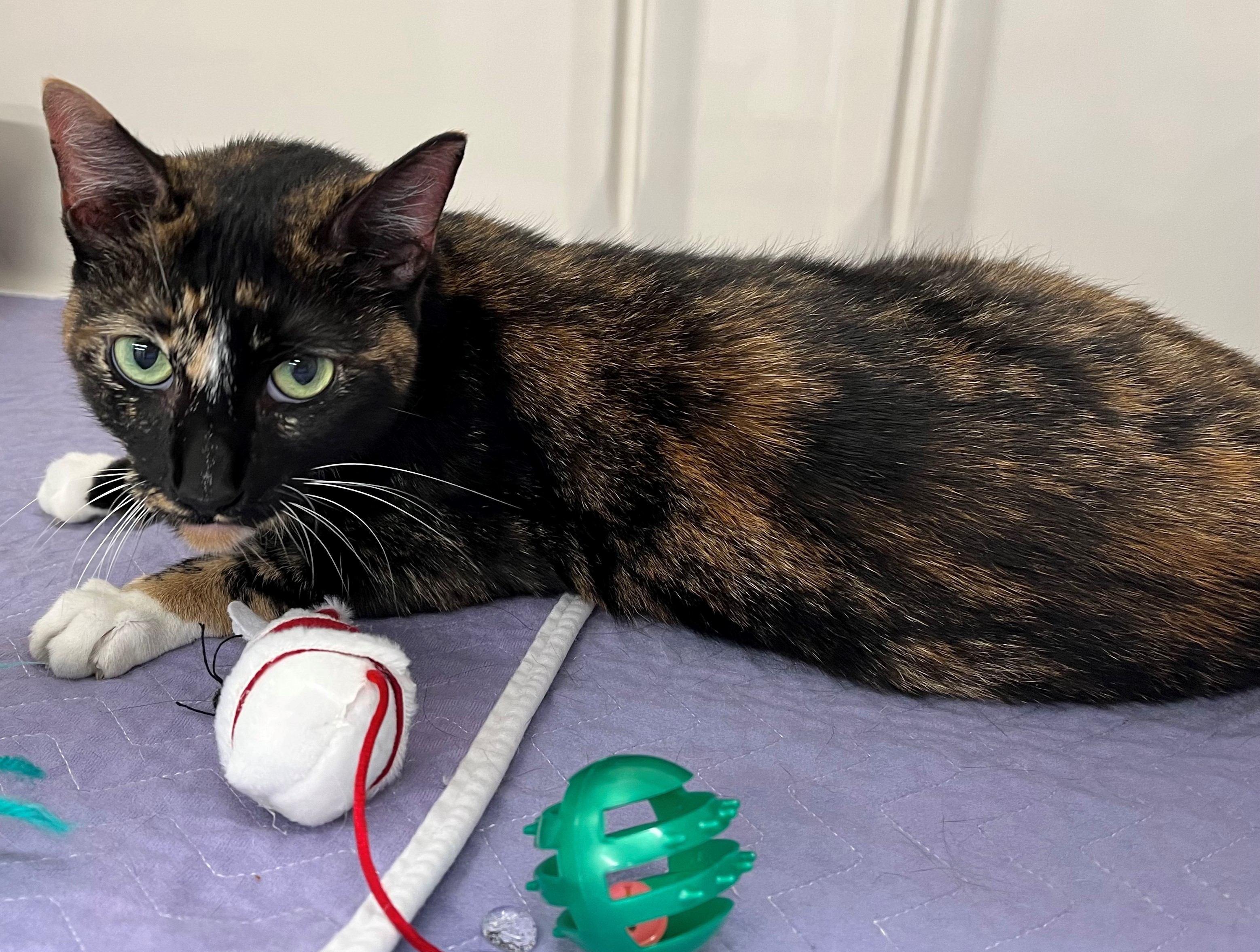 Born: October 18, 2023 Curious, friendly, and full of energy and spunk, this sassy little girl likes to play hide and seek and hunt for treats! She also enjoys chasing her toy bird, batting at a wand toy and wrestling with her kitty kicker. A purring machine, she will come and greet you upon walking in the door and roll over for some belly rubs! And when it’s time to wind down she turns into a love bug who likes to snuggle up on your lap or share your pillow at bedtime. In no time you will see that with Brisa you have a friend for life!