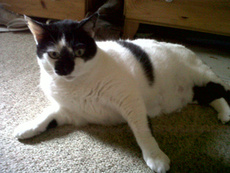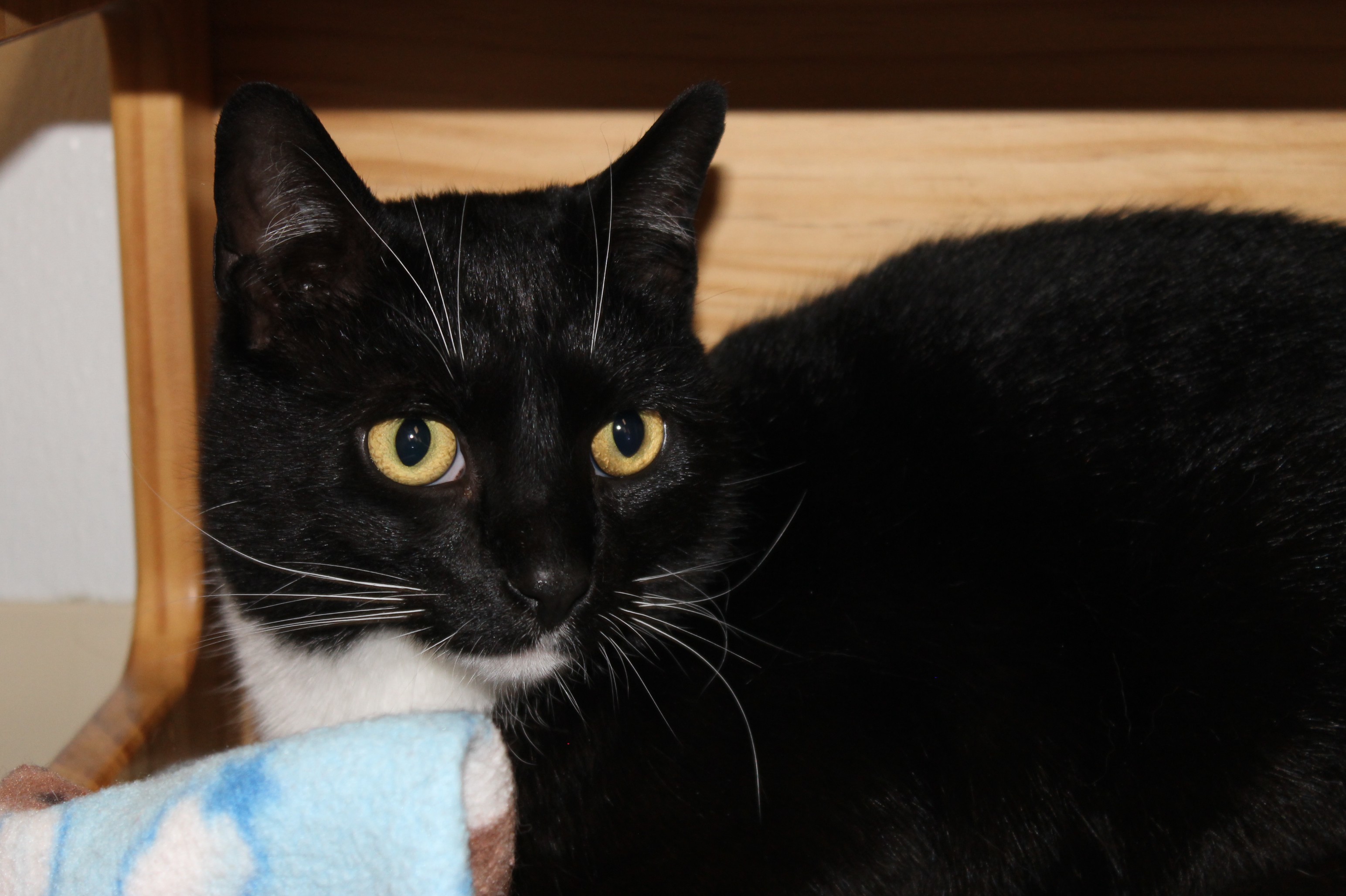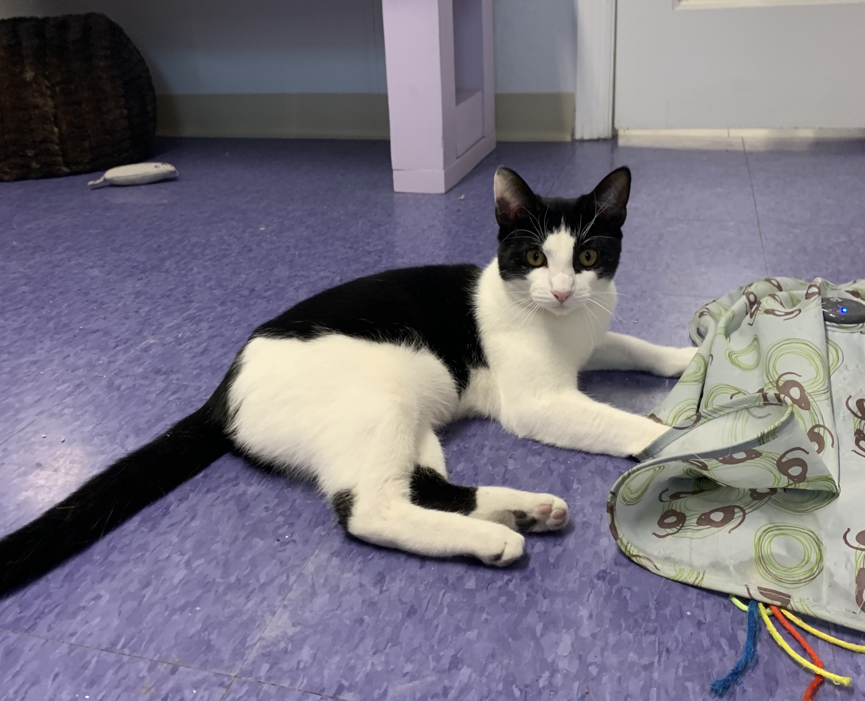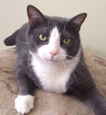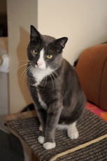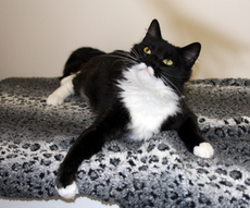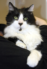 is a sweet Tuxedo who came to us by a woman who gave him up for a dog. He is about 5 years old and is declawed. He is very friendly, affectionate and outgoing boy.