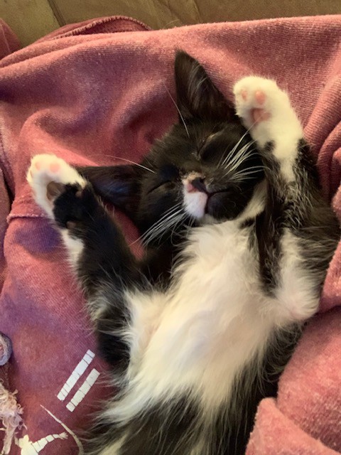 Adoption Pending Born: August 23, 2022 BARNEY, Barney, Barney...where to start? Devilishly handsome with golden eyes, loving, playful, and so well-behaved! If you crave a high-maintenance pet, then Barney is not for you! No fussing, no crying, just pure happiness. Watching him explore is entertaining; he acts like he is grown up, then sees his reflection and gets scared! He remembers he is a baby and comes to the nearest human for a reassuring cuddle. He is the sweetest, most perfect boy! Barney is the brother of Lily, also featured on this website.