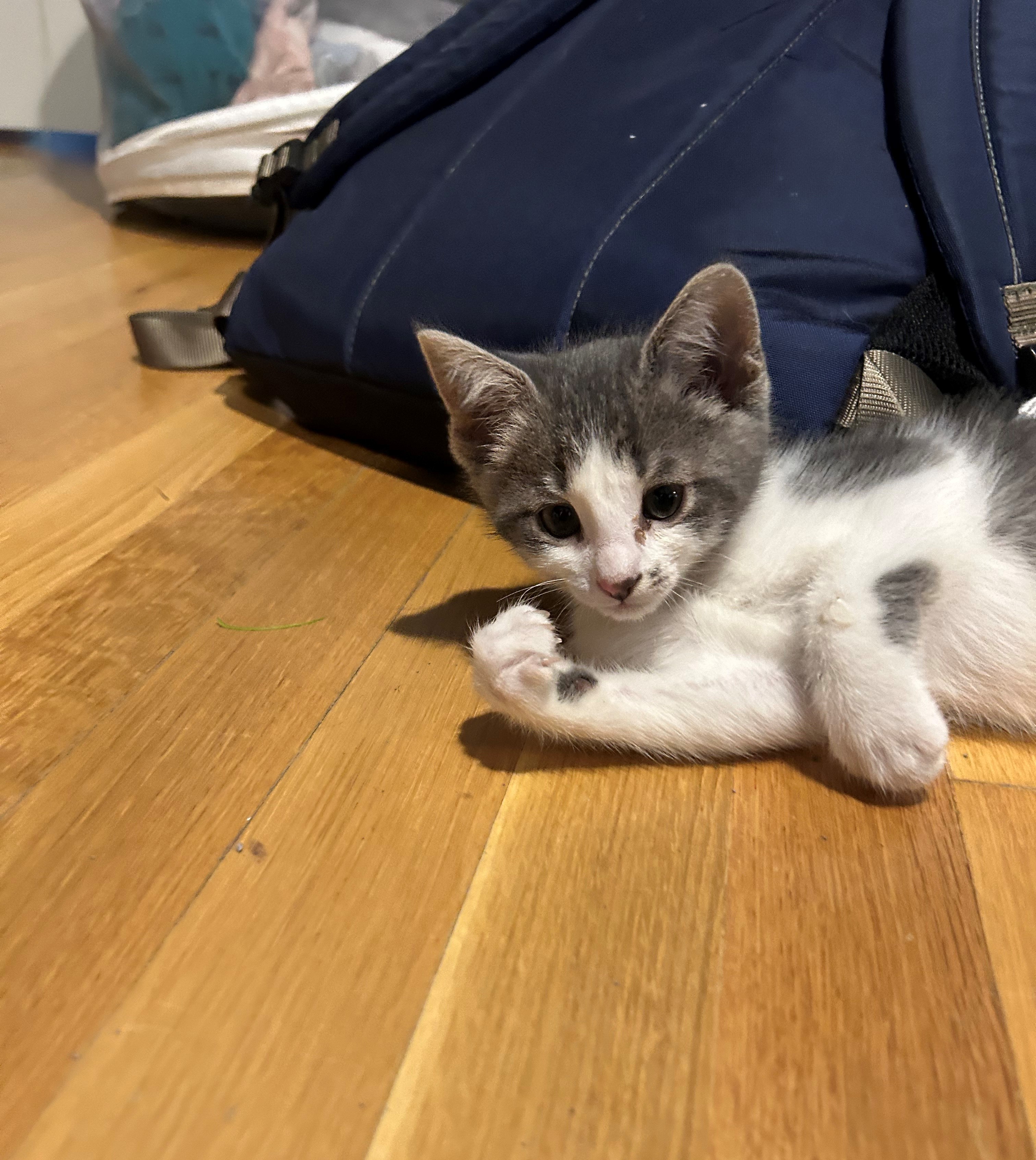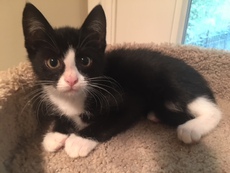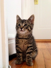 is an adorable little 6 1/2 week old male kitten who we rescued from a NYC shelter. He is very loving and playful.