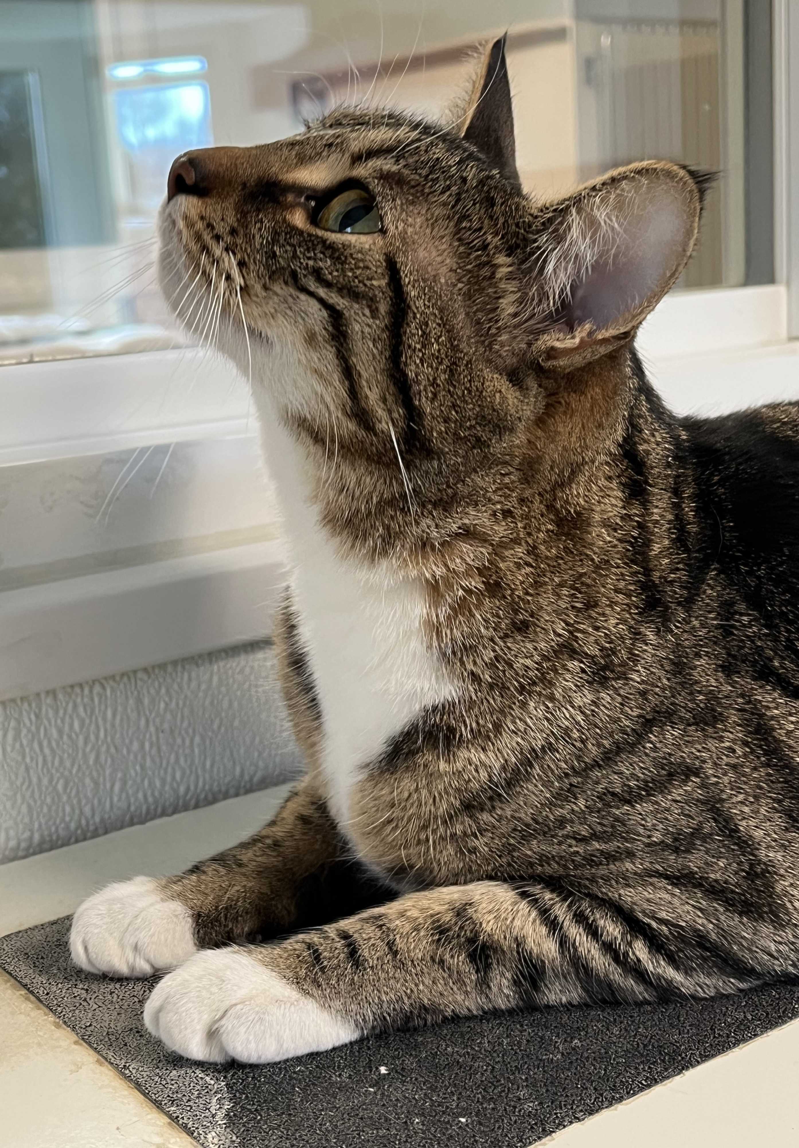 Born August 2020 Bandit is an energetic young boy who will keep you smiling with his antics. He loves to play and he would be very happy to share toys with another young cat. Bandit is curious about the world outside and spends his quiet time watching out the windows. He has a sweet side too and will put his head under your hand for pets. Bandit will certainly steal your heart if you give him a chance.