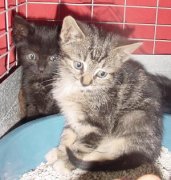 4 kittens about 6 weeks old. The 2 tabbies are females, the 2 black ones are males. Very sweet.