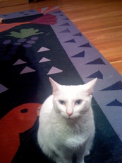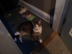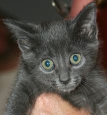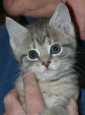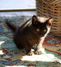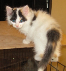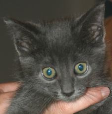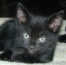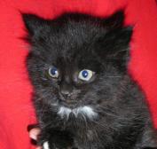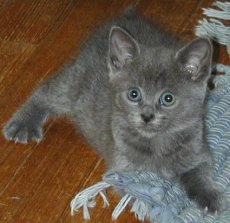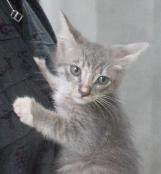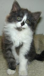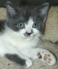 is about 8-9 weeks old (as of 1/10/03) and very cuddly. She is very much a kitten and loves to play, run and hop around.