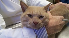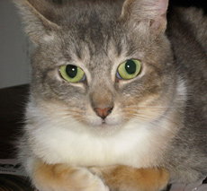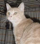 Butterscotch is a 9 year old, spayed, front declawed darling marmalade kitty, up to date on vaccines and in excellent health (though slightly overweight). Currently living at her vet's office, Butterscotch recently lost her beloved owner to a brain tumor. This sweet cat was her owner's world, and now Butterscotch needs a new permanent loving home to replace the one she lost. Butterscotch is great with gentle dogs, loves being petted and has huge, soft green eyes that look into your soul. Interested adopters should contact Jill at jilary@hotmail.com (and please put BUTTERSCOTCH in the subject line).