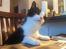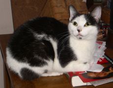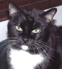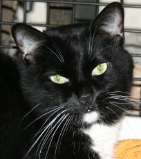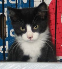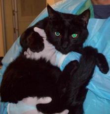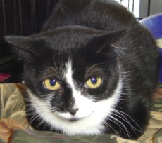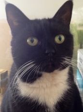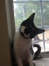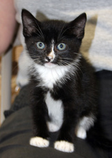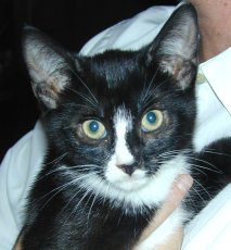 Button is an absolutely adorable female, black & white Tuxedo, about 10 months old now. She's very sweet and just loves to cuddle. Button (also known as Mitzy) resides in a foster home where she receives lots of tender loving care and gets along great with the dogs and other cats in the household. She's a fun kitty and will do well in a family.
