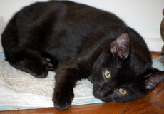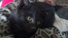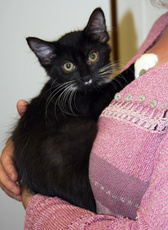 We know for sure that although this eight month old was found trying to cope with life on the street that he came from a home because he is an instant lover. Or maybe he is just that way. All velvety black and soft, he turns over to have his belly rubbed the minute you look at him. He will make a great pet in any family.