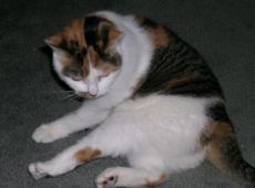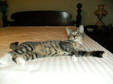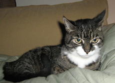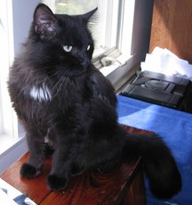 is a declawed semi long-hair beauty, loves people but prefers to be a one-and-only. She's two years old, spayed, very clean, and, of course, has all shots.