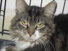 Barrett is a "saved" kitten that his current fosterers trapped, had neutered and vaccinated. Barrett has the look, structure and size of both a Norwegian Forest Cat and a Siberian Forest Cat. At approximately nine months old, he already weighed 12 pounds and is still growing. This handsome male is full of energy, great with adults (not with kids) and gets along well with the five other cats in his fosterer's household (though he occasionally gives chase and is somewhat dominant). To meet Barrett, contact Brian at Byrons@erols.com or 631-261-3486.