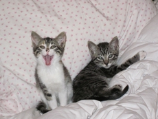 Bear and Peter, sons of Naya (also featured on our website) and born on April 8,2011, are two incredibly sweet and very well socialized tabby kittens. These darling little boys have perfect use of the litter boy, are playful as only kittens can be, and are ready for a permanent loving home.