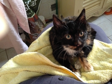 Bryana is a sweet girl who was dumped into the street by her previous owner when s/he could not bother with her anymore. She is beautiful, young and affectionate. She has a litter of kittens and is now spayed. She would love to find a home with her daughter Brian.
