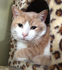 Bubbles is a true lap cat. This 6 year old declawed cat loves being close to you, and if your lap is not available, he will find another way to perch himself on you. He is loving, outgoing and very social with people and other cats. He also gets along with dogs. He is one handsome red and white tabby with lots of white tossed in.