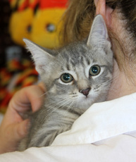 Bambi is a sweet, friendly and playful 7 week old female kitten. She is very lucky that a Pet Rescue volunteer heard she was about to be released outside because her owner was not allowed to have cats in her apartment. Bambi loves to curl up on my neck for a nice cuddle and a nap. She has been given a clean bill of health by out Vet and is ready to share her heart with a new family.