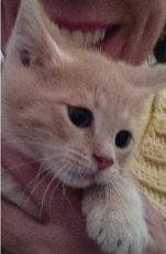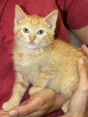 Buzz is a creamy orange little explorer so named after the famous astronaut. He loves to check out every inch of a room looking for anything he can turn into a toy or game. Buzz is a great climber and would love a tall cat stand. He is 8 weeks old as of March 22, 2015, healthy and full of fun. He is micro-chipped and has had his first series of kitten shots. This little one is more than ready for his forever home.