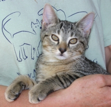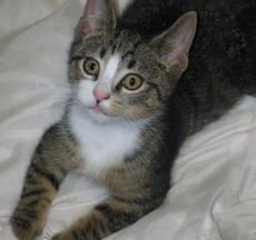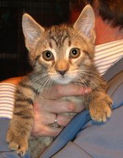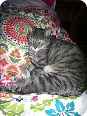 is a sweet little Tabby, about 7 weeks old. Very playful and a purrer. His sister Pebbles is also listed.