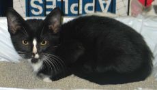 is an adorable, friendly little kitten, about 9-10 weeks old. He is very sweet and playful. His mom, Maura, is also listed.