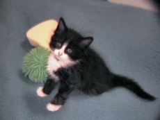is a sweet 7 week old kitten who loves to play and romp around with his littermates.