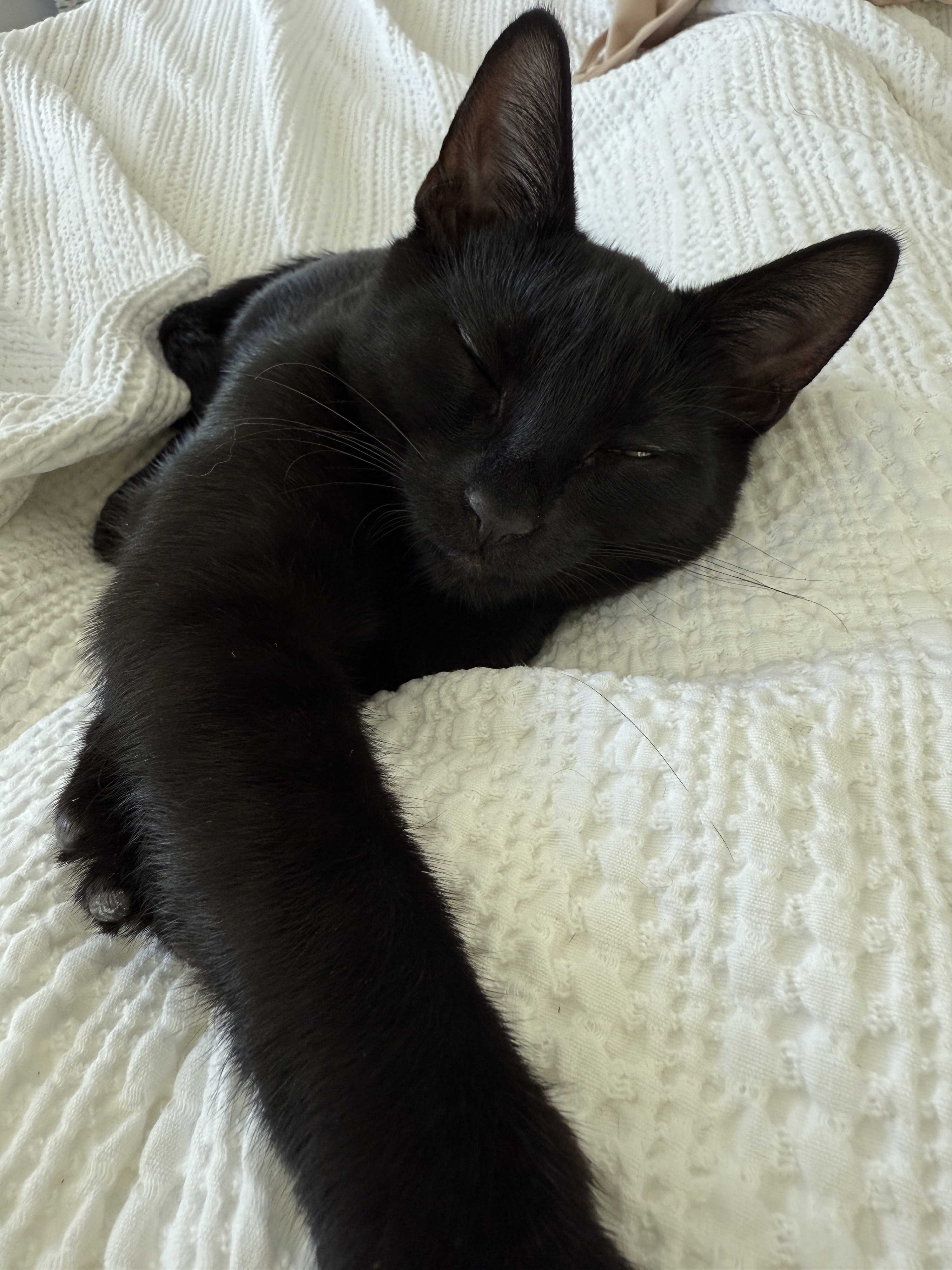 DOB - 3/12/25 Meet Dulcie – Your New Best Friend! Dulcie is a gorgeous kitten with a sleek black coat. She has a playful spirit and a heart full of love. She’s been living with a foster family where she’s truly thrived—especially alongside their 120-pound Great Pyrenees, who she adores! Whether she’s chasing toys or curling up next to her canine buddy, Dulcie brings joy wherever she goes. She loves interacting with humans and will happily pounce into playtime with you. Her gentle sweet nature and confidence around big dogs make her an ideal addition to a pet-loving household. If you’re looking for a kitten who’s affectionate, spirited, and totally cool with pups—Dulcie is your girl. She’s ready to find her forever home, and she can’t wait to meet you!