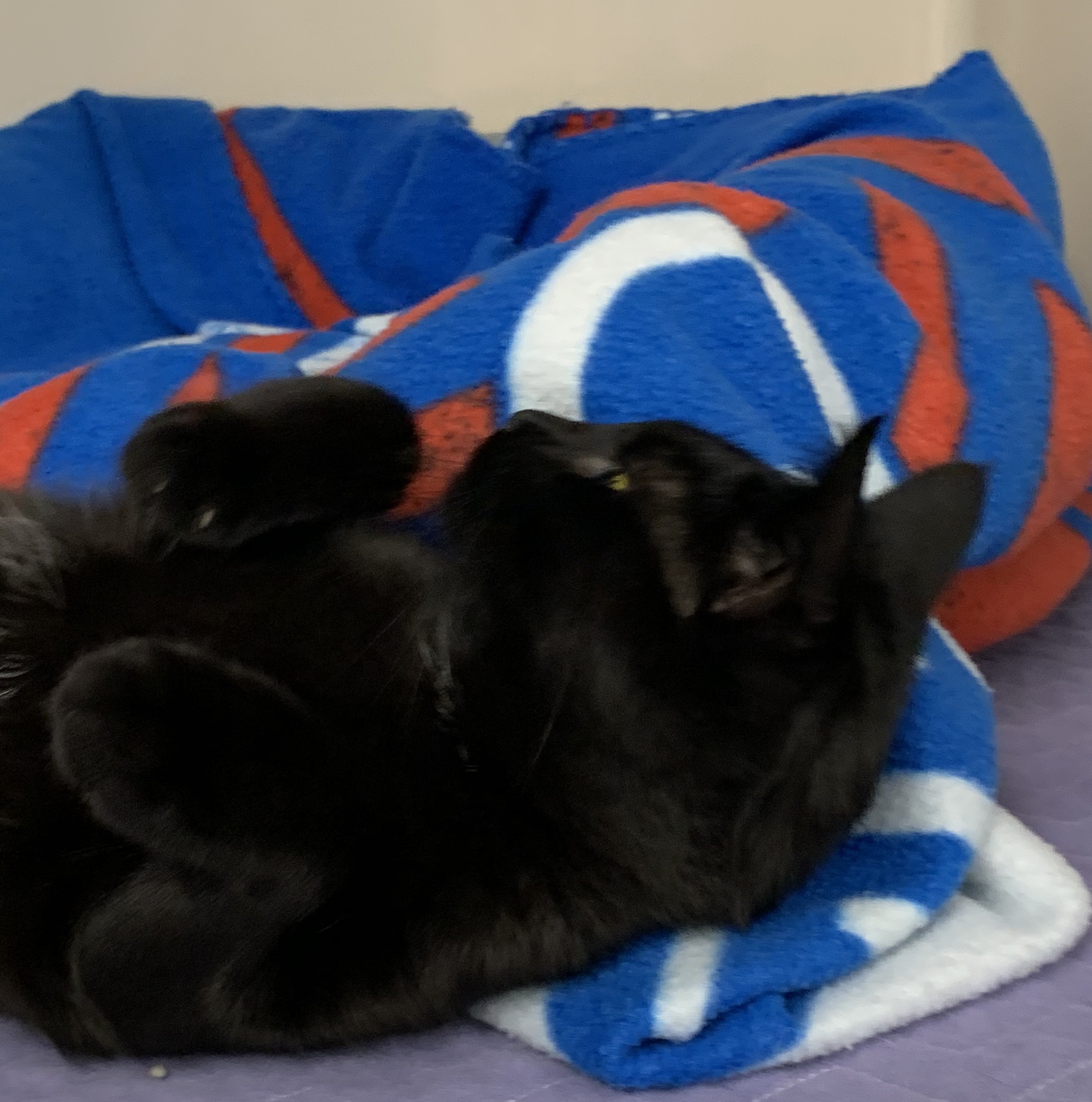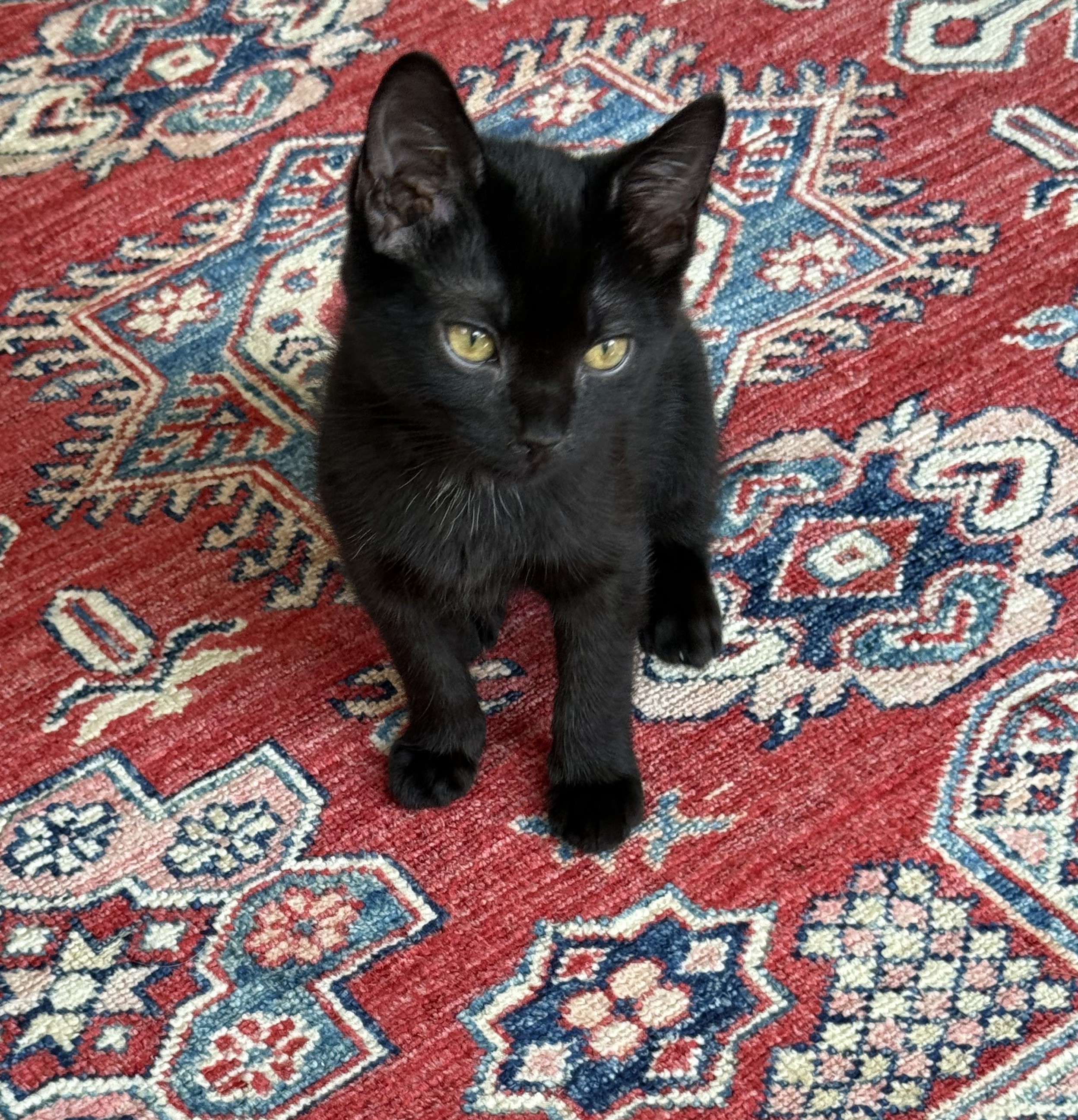 DOB: 3/12/25 Dante is a spunky black kitten who loves to play all day! He enjoys chasing after his toys and exploring all over the house. He is very affectionate, purrs loudly, and will lick your hands to show his love. Dante is very friendly with other cats and very open to making new friends. Dante’s an eager ball of energy and will add lots of fun to your home!