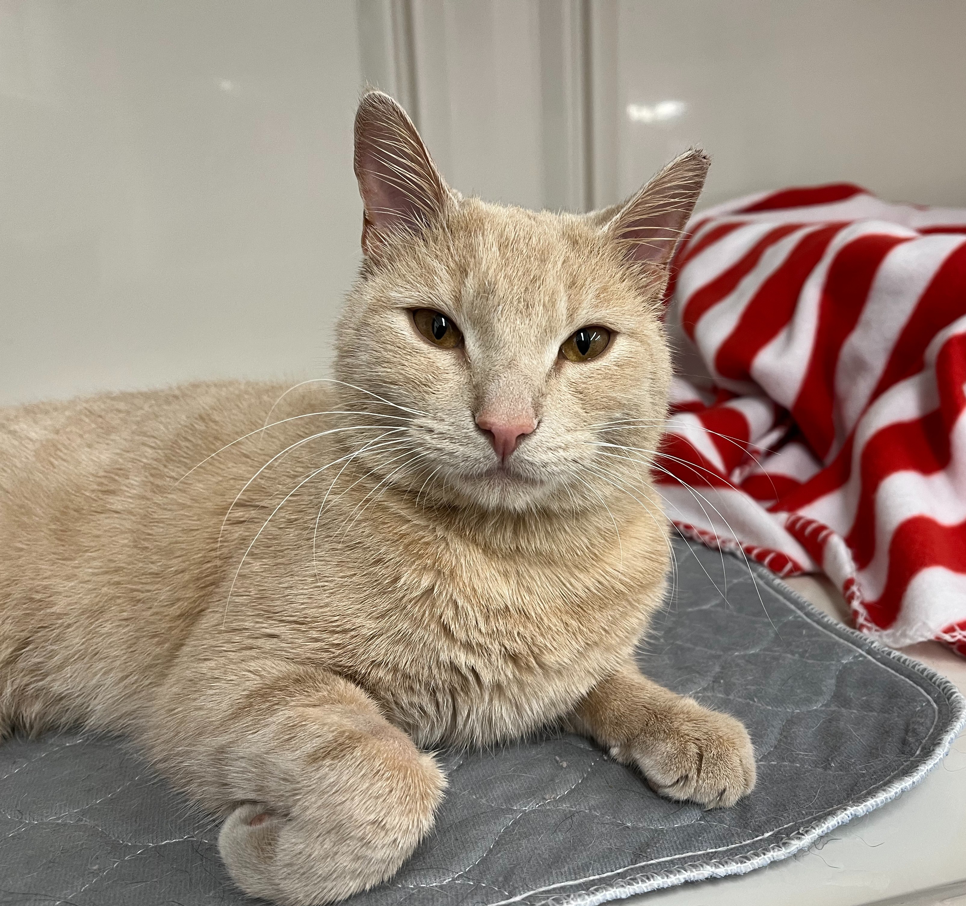 Born January 2024 Dorado was surrendered by his owner because he was no longer wanted. This friendly, affectionate boy was about to be thrown out on the street to fend for himself but he was saved just in time. Dorado now gets all the love and attention he deserves and shows his gratitude by rolling and purring for more. He's easily handled and calm around children. He also has a curious nature and never seems to tire of looking out the window to watch the world outside. Dorado does well with other cats but would prefer not to share his home with dogs.