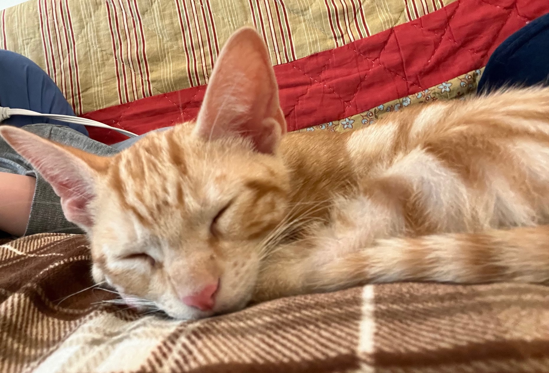 Dinky was immediately eager to make friends with us and loves attention but Joey who was terrorized by one of the cats he lived with took a little time to learn to trust us. He does now.