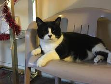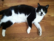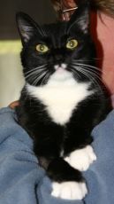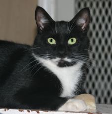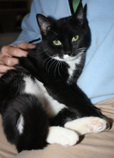 Domino's human passed away in May, leaving him with no place to go. Â Now residing at our Kitty Cottage, Domino is a 4 year old very handsome spunky tuxedo, curious with a bit of mischief and adventure in him, and more than able to hold his own with other cats. With his dominant personality, Domino will do best as the only cat in a household without young children. A friend of Domino's prior owner has agreed to sponsor him.