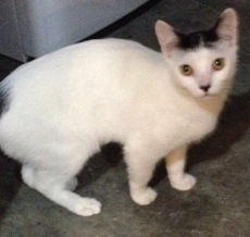 is about a year old and very loving. He was rescued from the streets along with his sibling (who looks just like him) by a kind woman. Gets along well with other cats.