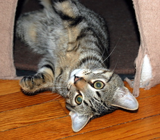 DJ is a beautiful female kitty, very sweet and friendly. You have to meet this great tabby to appreciate her lively personality.