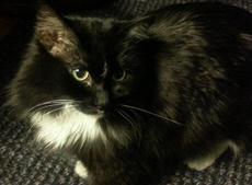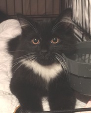 is a gorgeous 1-2 year old cat. She has been the most wonderful mother to her three kittens (also posted). She constantly has conversations with them (they meow back and forth!) and never lets them out of her sight. She never stops purring and loves people. She has a very mellow disposition. She lets you hold her like a baby for hours without ever complaining. She loves belly rubs too! She is not too keen on jumping on furniture for some reason (a plus for some families). She gets along famously with kids as well. Every person that meets her is in awe of her beauty. She has big bright green eyes, fluffy feet and a fluffy tail. Her tuxedo markings are just beautiful. Her photos do not do her justice! Her foster family loves her dearly and hope she finds a warm loving home for the holidays. She would love to be adopted out with one of her kittens, but doesn't have to be. Duchess is spayed & up to date on vaccines.
