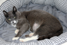Dawnell would be considered a pure Russian Blue if her eyes were gray instead of leaf green. Her coat is a beautiful blue gray. Even her paw pads are gray. Dawnell is sweet and loving with people and would be happy in a home in which she is the one and only pet. She was rescued from an inhospitable cat colony and is defensive with cats. Dawnell is spayed and has all her shots. You can see her in her foster home in Larchmont. Call 914 630 4851.